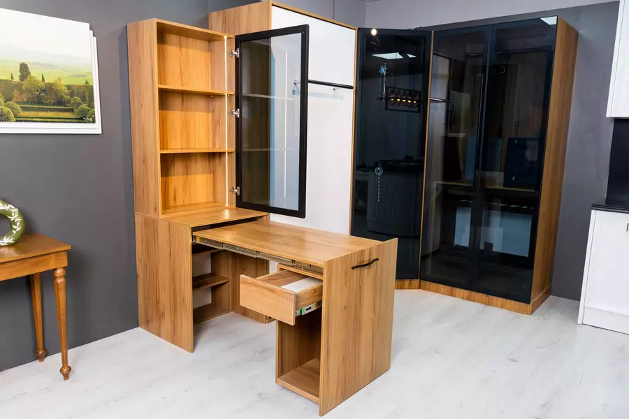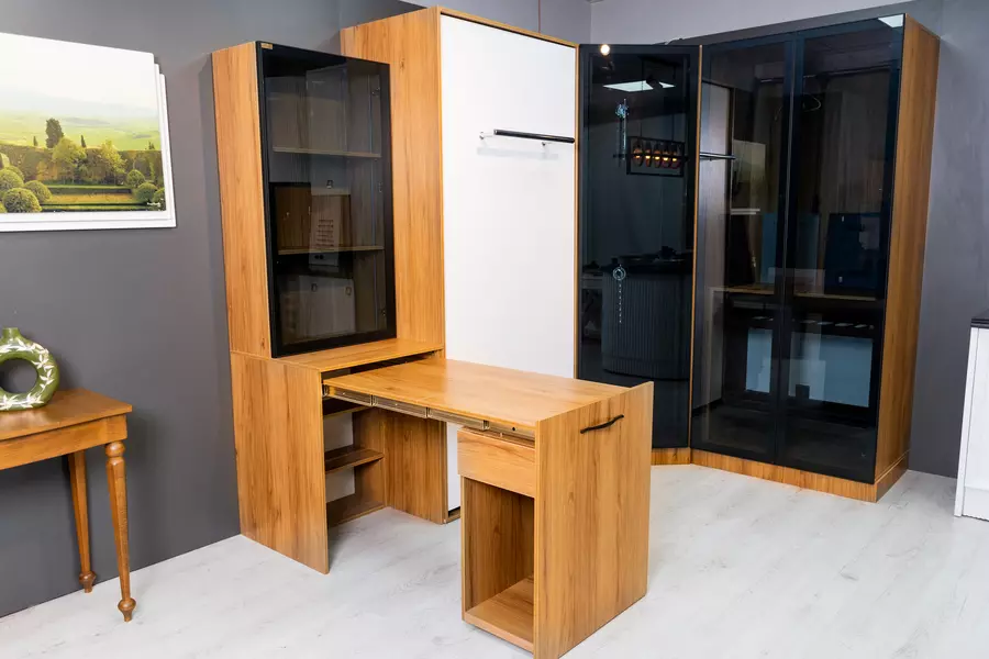 با کشیدن دسته، به یک دفتر کار تبدیل میشود. برای کسی که به یک فضای کاری نیاز دارد اما نمیخواهد فضای زیادی را اشغال کند و یک اتاق مرتب را دوست دارد.