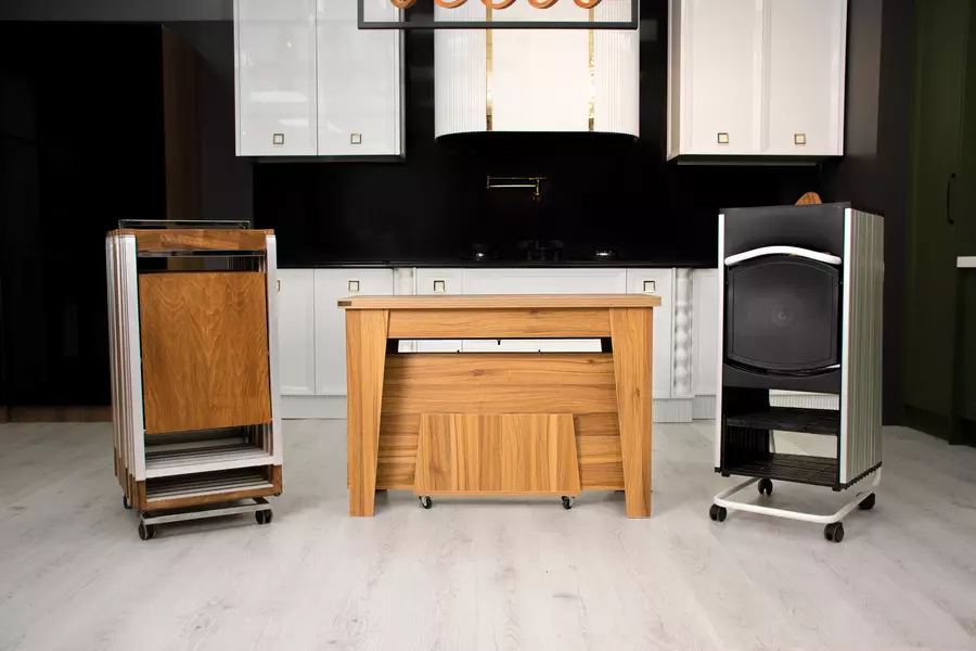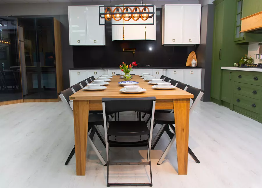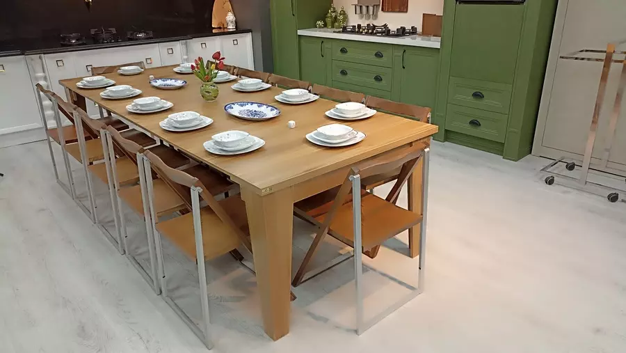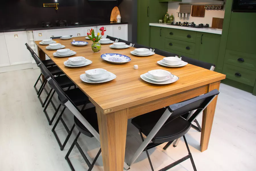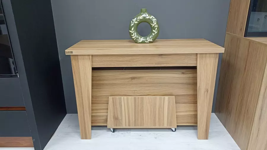 فضای خود را برای داشتن یک میز ناهارخوری محدود نکنید، هنگامی که به یک میز نیاز دارید  کافیست کنسول را باز کنید و صفحات را به کنسول اضافه کنید تا یک میز غذاخوری 12 نفره داشته باشید. حتی میتوانید اندازه میز را از 2 نفر تا 12 نفر تغییر دهید. میزی همراه با انبوهی از غذاها و نوشیدنی ها با اطمینان و محکم.